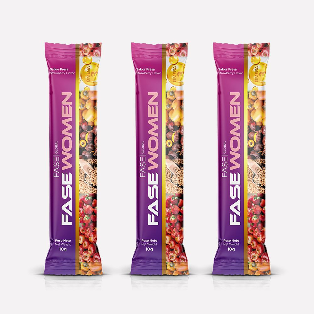 "¡Despierta tu vitalidad interior con Fase Women! Nuestra mezcla única de aguaje, soya, fresa, manzana, cocona, calcio, omega-3 y las poderosas vitaminas A, C, D y E, con un delicioso sabor a fresa, es el camino para empoderar tu bienestar. Descubre una manera deliciosa de nutrirte y fortalecer tu feminidad, ¡porque mereces lo mejor!"